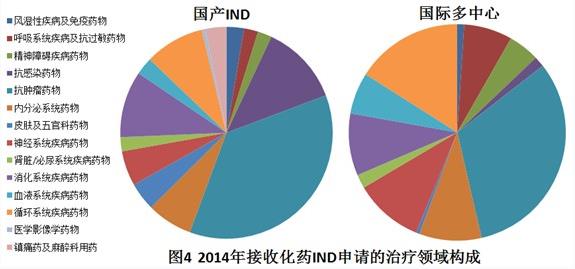 2014年接收化藥IND申請的治療領(lǐng)域構(gòu)成情況見圖4。