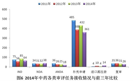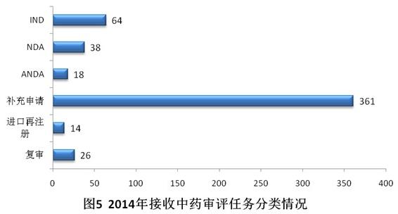 2014年共接收中藥注冊申請521個,其中69.3%為補(bǔ)充申請。具體見圖5。