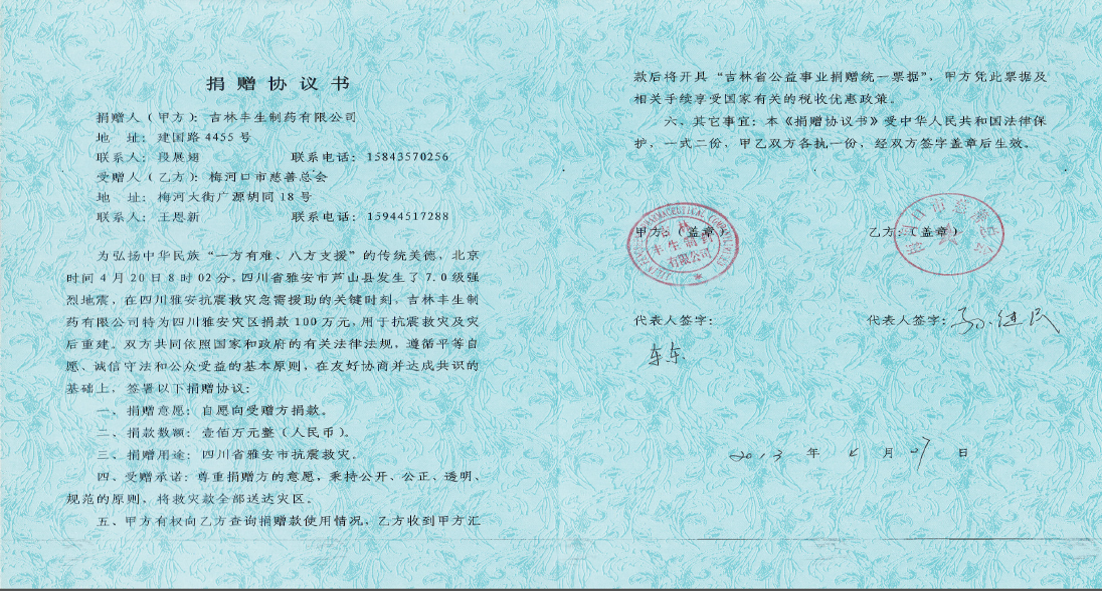 Donation Agreement to Support New Rural Construction